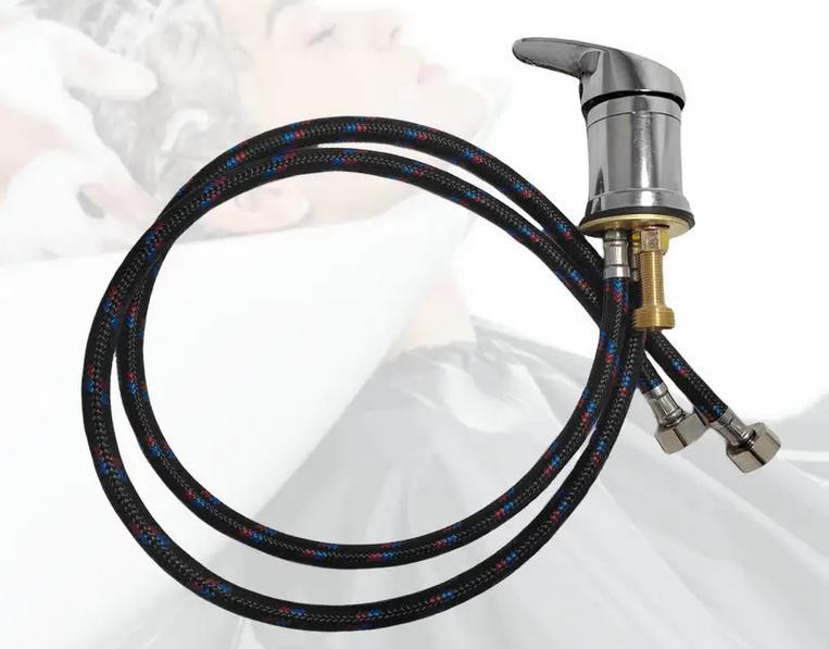 A fodrász fejmosó csaptelep tartalmazza a keverő csaptelepet és a hideg meleg víz bevezető tömlőket.