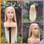 Részletek ».Fodrász babafej vállakkal 70cm protein alapú szintetikus szőke hajjal TCS-56138690989