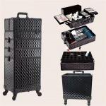 Nagyméretű 4 részes Fodrász - Kozmetikus táska - bőrönd - koffer fekete színben, 4db körbe forgó...