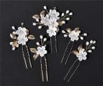 Menyasszonyi - esküvői - party hajdísz fehér virágok arany levelekkel strassz hajtű 5db-os szett