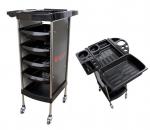 Eszközkocsi erős kerekekkel erős fekete műanyagból. Az 5 műanyag fiókos, fodrász eszközkocsi sok...